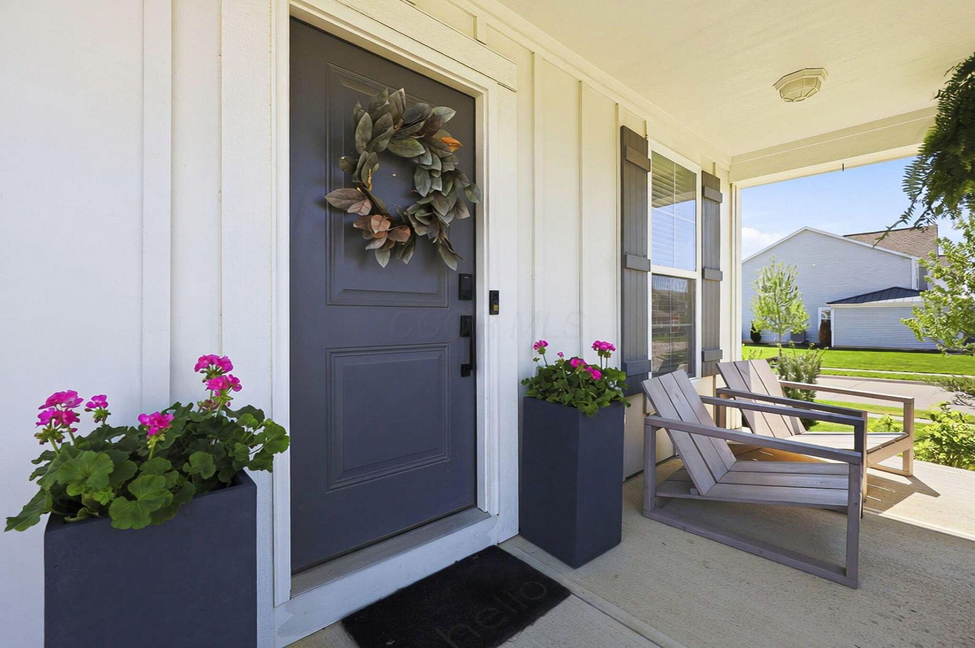 Newly built in 2020 in the quiet Clarkshaw Moors development this home is situated on a prime corner lot and across the street from the large community space with playground, pond and walking paths. The 4-bedroom, 2.5-bath home in the highly sought-after Olentangy School District (Berlin High School) is a must-see. The 9' ceilings, neutral color palette and open floor plan create a bright, modern feel throughout. A dedicated first-floor office with French doors and custom built-in bookshelves provides the perfect work-from-home setup. The spacious family room, highlighted by a wall of windows, flows seamlessly into the stunning all-white kitchen featuring quartz countertops, a subway tile backsplash, stainless steel appliances, and a large center island with bar seating. The dining area with cathedral ceilings opens to a patio and sizeable backyard -- ideal for outdoor entertaining. A thoughtfully designed mudroom includes lockers, a boot bench, coat closet, and built-in desk for added functionality. Upstairs, you'll find four bedrooms, including a generous primary suite with a walk-in shower and spacious closet, along with three additional bedrooms, a shared full bath, 2nd floor laundry room and a large versatile bonus living space. The full unfinished basement offers 9' ceilings, a bathroom rough-in, and endless potential for future finishing. 2.5 car garage provides room for ample storage. See A2A