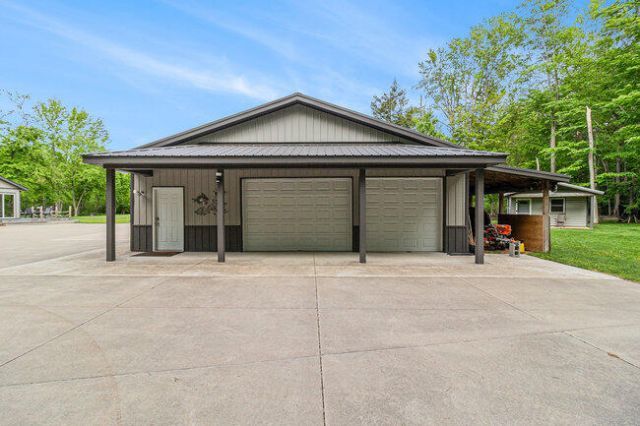 Country home on beautiful Round lake, with 330 of waterfront and 6 pristine wooded acres. Home offers open floor plan, vaulted ceiling with pine tongue and groove. Large kitchen with island, pantry and dining area perfect for entertaining. Main floor living, 2 bedrooms, 2 full baths with primary en-suite & four season porch. 52x36 4 stall garage with 6 covered entry, 8.5 lean two, insulated, work shop, partially heated and finished rec room. Whole home/garage Generac. Garden area, blueberry and raspberry bushes, 13x16 hobby cabin or bunk house. Owner is a licensed Realtor in MI. Close to Lake MI, recreation and golfing.